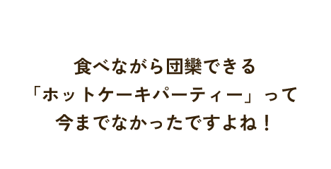 思い思いの味つけで楽しむこともできるので、世代や性別を問わずたくさんの人たちが集まるホームパーティーなどでもみんなでホットケーキを楽しむことができます。