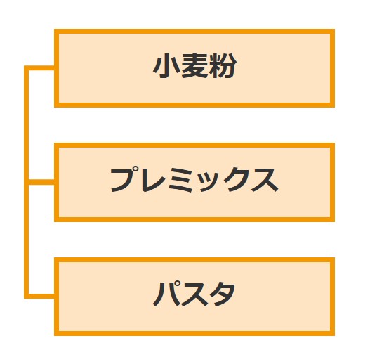 小麦を原料に、パンやケーキ、麺類などの用途に合わせた各種小麦粉やユーザーのニーズに対応したプレミックス類・パスタを製造・販売しています。