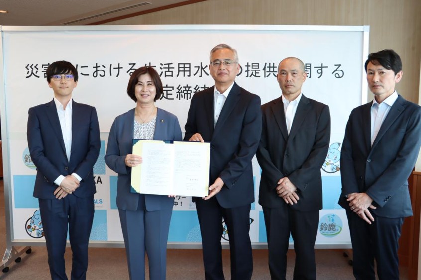 防災協定は、自治体が災害発生時に迅速かつ的確な対応や物資支援を行えるよう、行政機関や民間企業・団体、防災関係機関等とあらかじめ締結するものです。鈴鹿市が水の提供に関して締結した防災協定は、本協定が5件目となります。