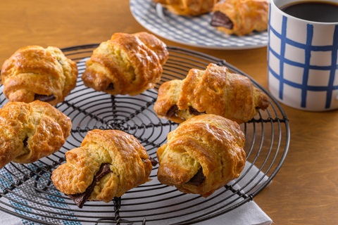 時間が経つと固くなりやすいので、生地を作ったら手早く焼くようにします。水分量が足りない場合、牛乳を足して調節します。